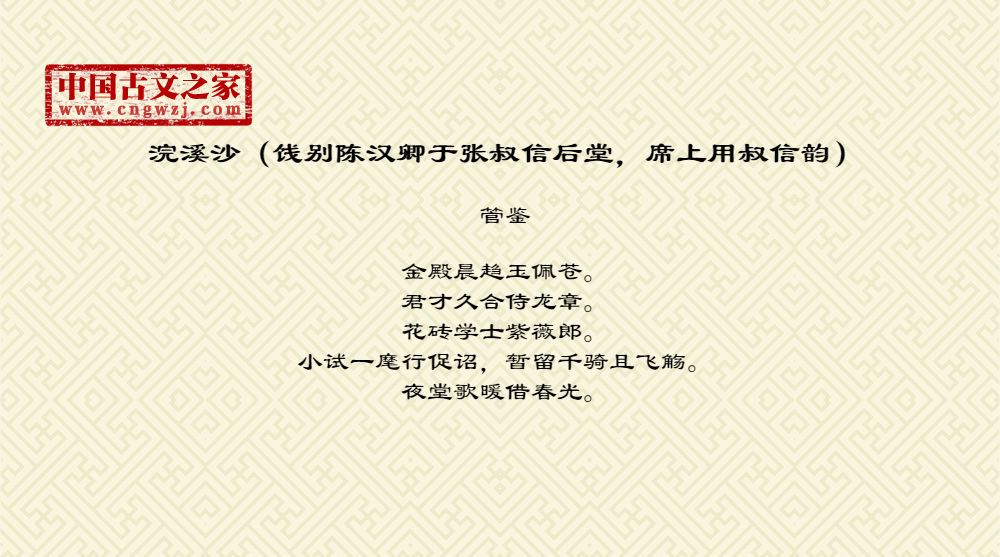 《浣溪沙(饯别陈汉卿于张叔信后堂,席上用叔信韵)》的原文打印版(管鉴)