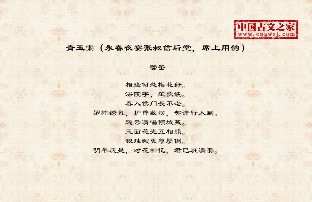 《青玉案(永春夜宴张叔信后堂,席上用韵)》由管鉴创作