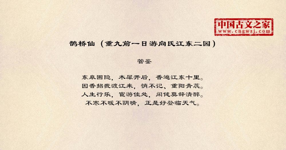 《鹊桥仙(重九前一日游向氏江东二园)》由管鉴创作
