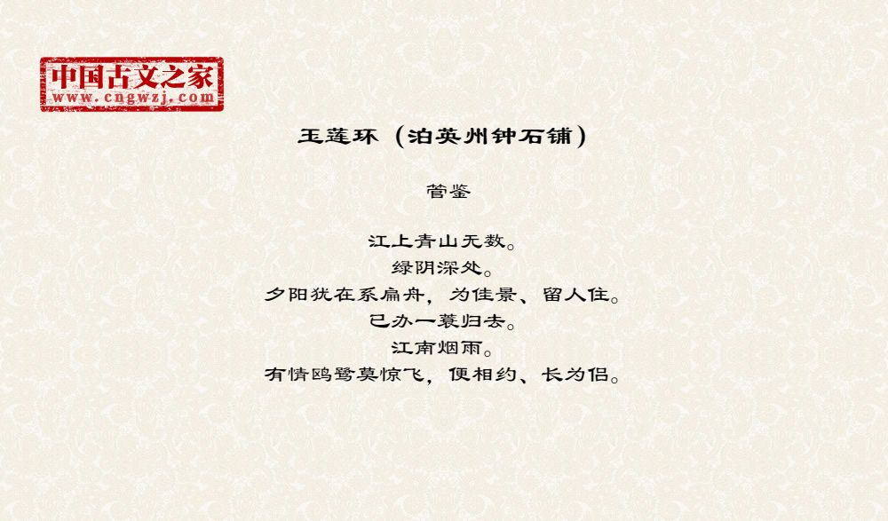 《玉莲环(泊英州钟石铺)》由管鉴创作