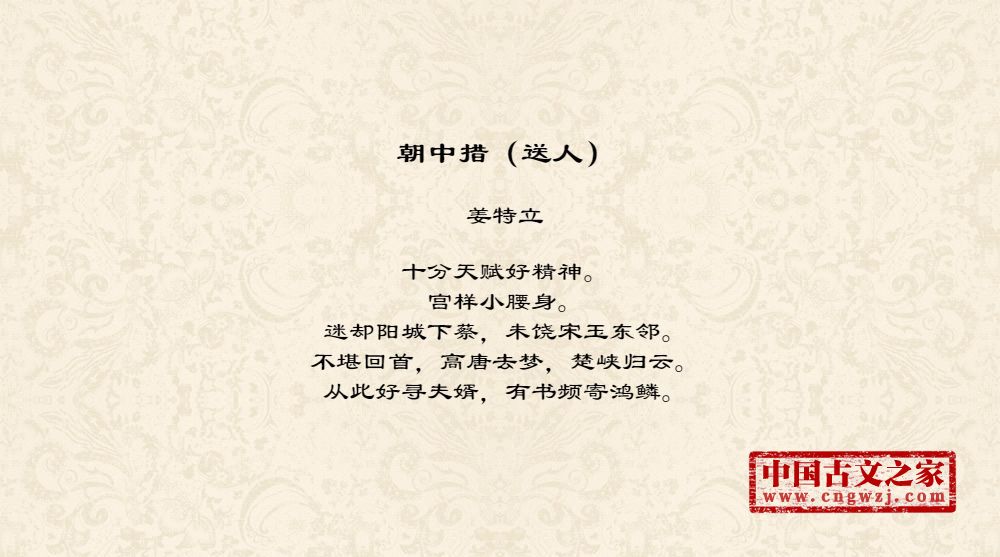 十分天赋好精神。宫样小腰身。迷却阳城下蔡,未饶宋玉东邻。不堪回首,高唐去梦,楚峡归云。从此好寻夫婿,有书频寄鸿鳞。