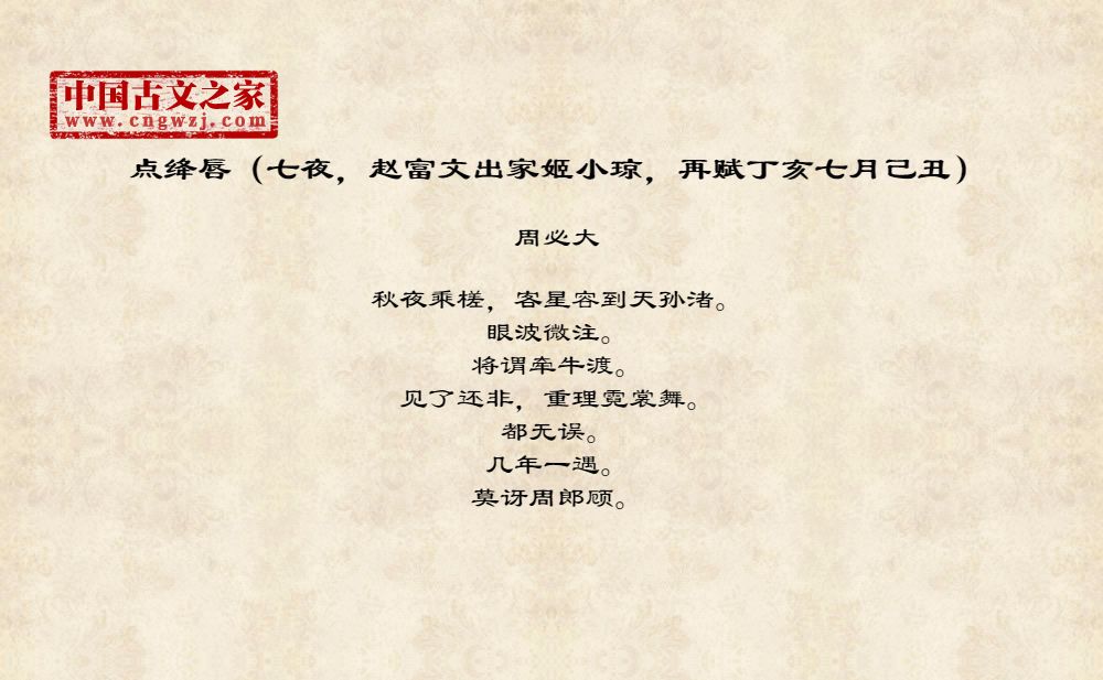 点绛唇(七夜,赵富文出家姬小琼,再赋丁亥七月己丑)