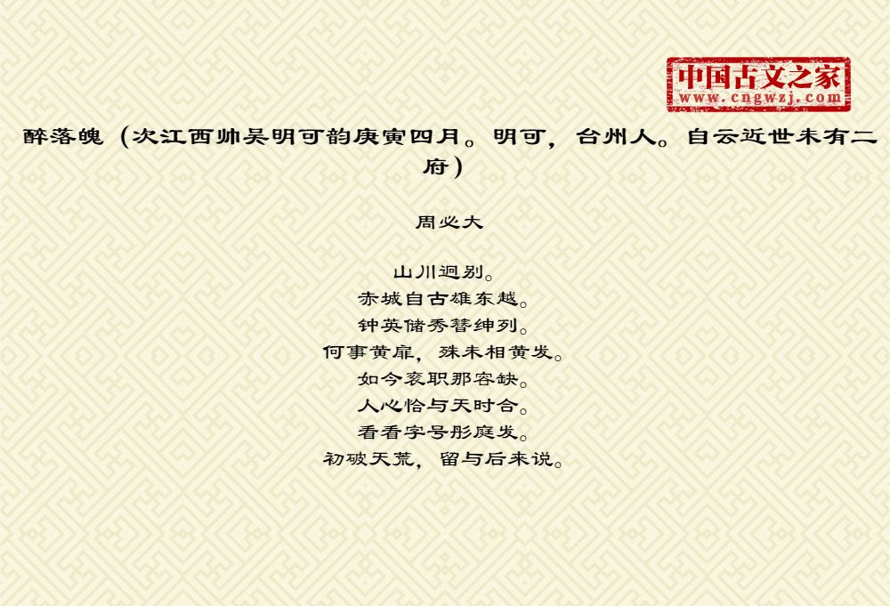 醉落魄(次江西帅吴明可韵庚寅四月。明可,台州人。自云近世未有二府)图片