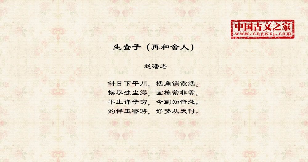 《生查子(再和舍人)》由赵磻老创作
