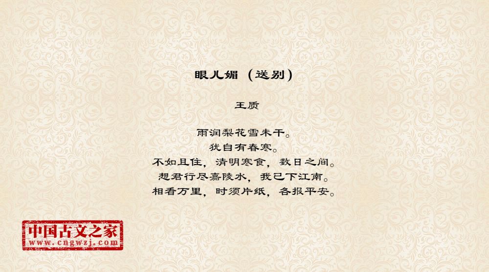 《眼儿媚(送别)》的原文打印版(王质)