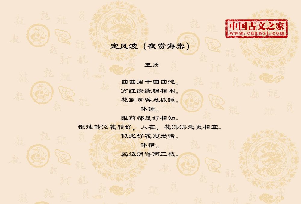 《定风波(夜赏海棠)》的原文打印版(王质)