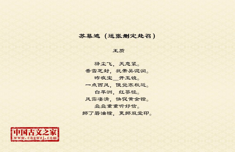《苏幕遮(送张删定赴召)》由王质创作