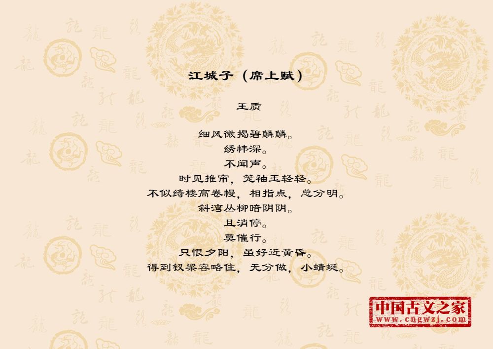 《江城子(席上赋)》的原文打印版(王质)