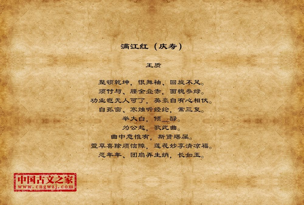 整顿乾坤,恨舞袖、回旋不足。须付与、腰金叠赤,面槐参绿。功业岂无人可了,英豪自有心相伏。自孤窗、寒烛听经纶,常三复。举大白,倾_醁。为公起,歌此曲。曲中意惟有,斯贤堪属。萱草喜除烦恼障,莲花妙享清凉福。愿年年、团扇弄生绡,长如玉。