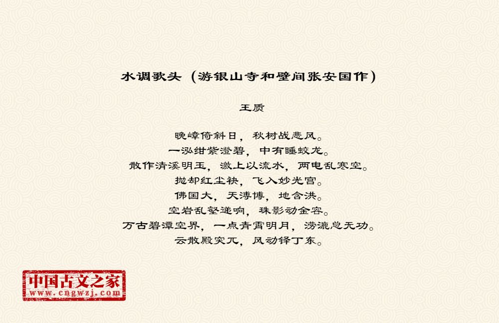 《水调歌头(游银山寺和壁间张安国作)》由王质创作