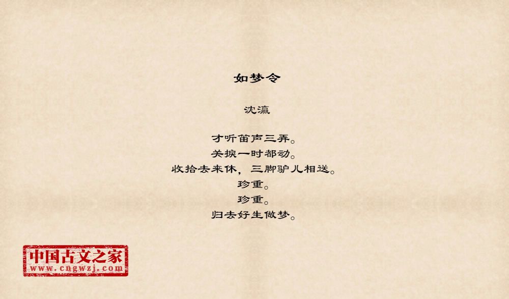 《如梦令》的原文打印版(沈瀛)