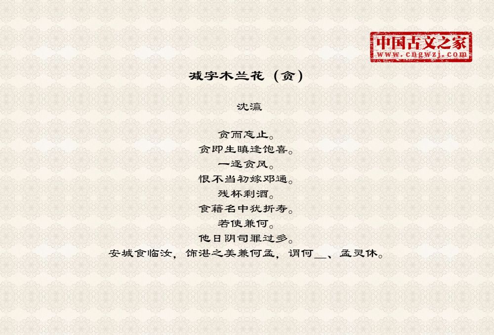《减字木兰花(贪)》的原文打印版(沈瀛)