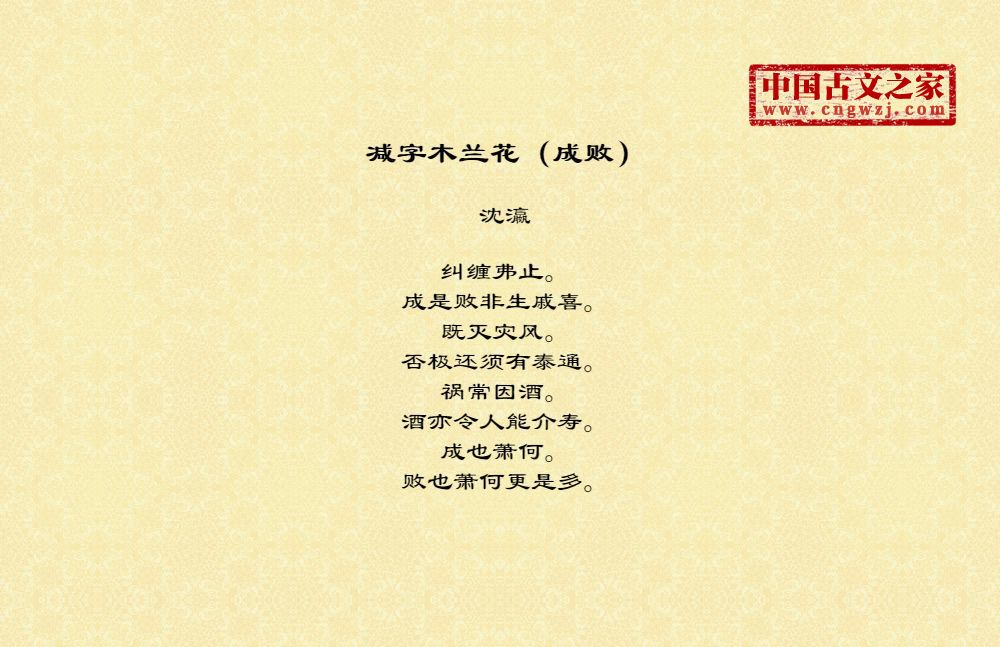 《减字木兰花(成败)》的原文打印版(沈瀛)