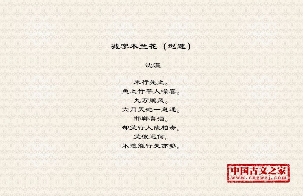 《减字木兰花(迟速)》的原文打印版(沈瀛)