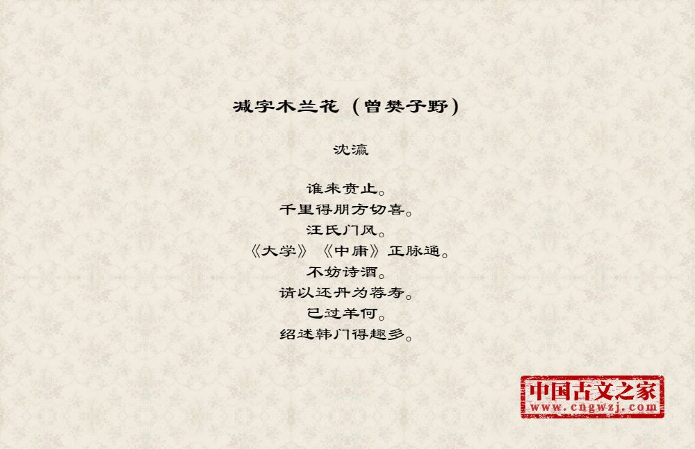 《减字木兰花(曾樊子野)》的原文打印版(沈瀛)