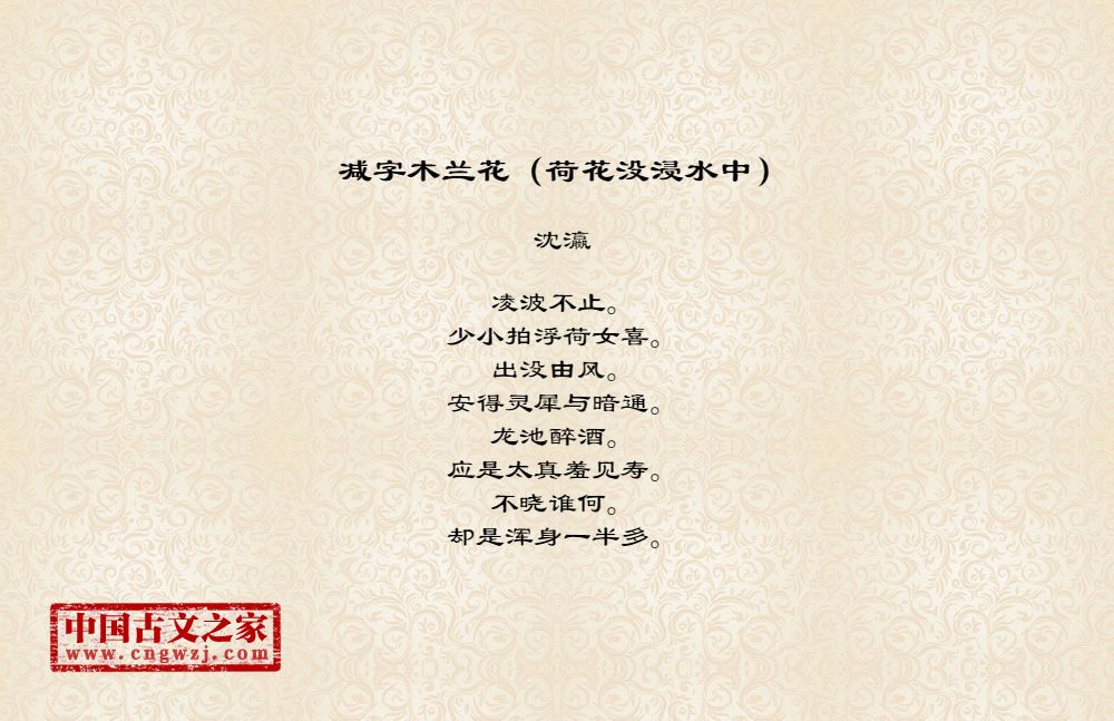 《减字木兰花(荷花没浸水中)》由沈瀛创作