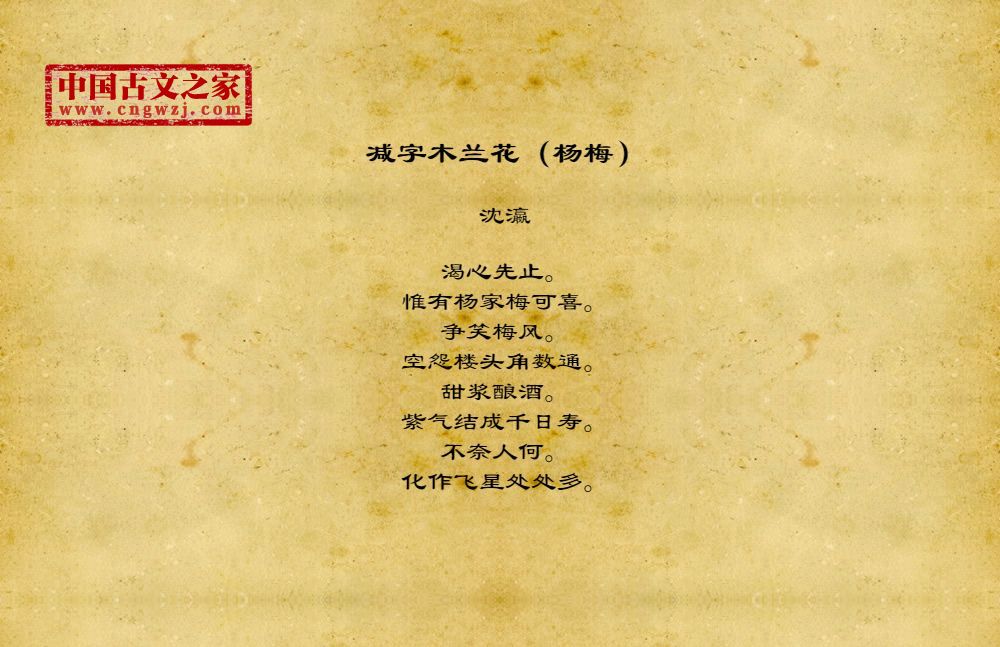 《减字木兰花(杨梅)》的原文打印版(沈瀛)