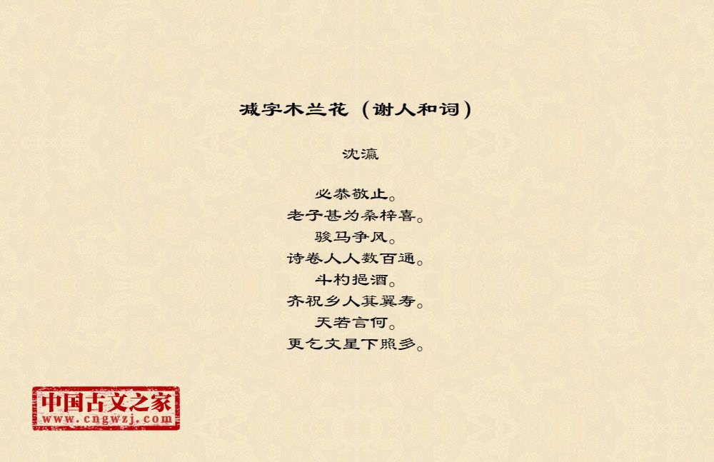 《减字木兰花(谢人和词)》的原文打印版(沈瀛)