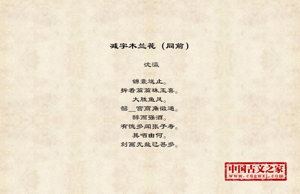 《减字木兰花(同前)》的原文打印版(沈瀛)
