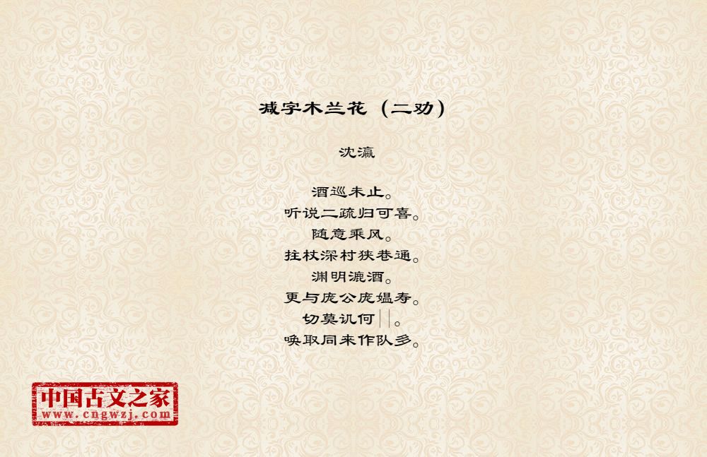 《减字木兰花(二劝)》的原文打印版(沈瀛)