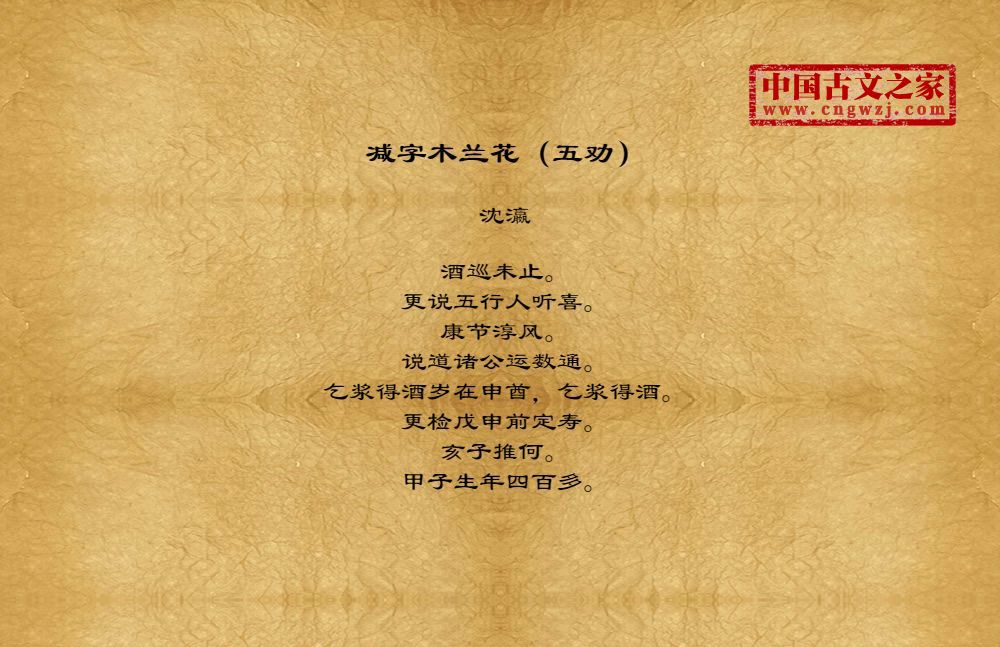 《减字木兰花(五劝)》的原文打印版(沈瀛)