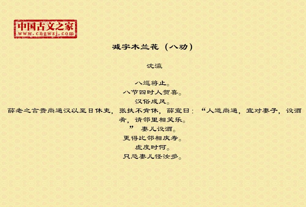 《减字木兰花(八劝)》的原文打印版(沈瀛)