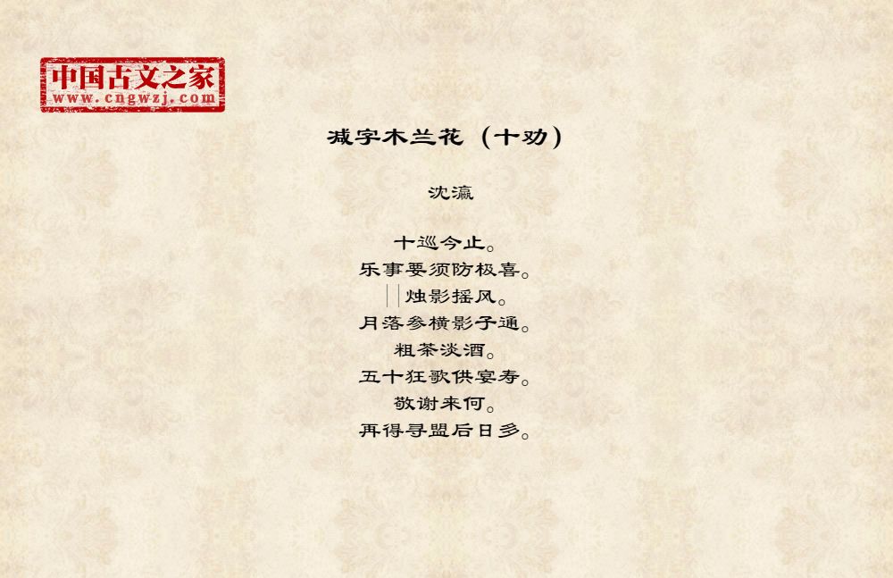 《减字木兰花(十劝)》的原文打印版(沈瀛)