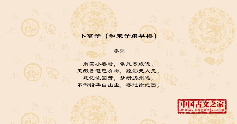 《卜算子(和宋子闲早梅)》的原文打印版(李洪)