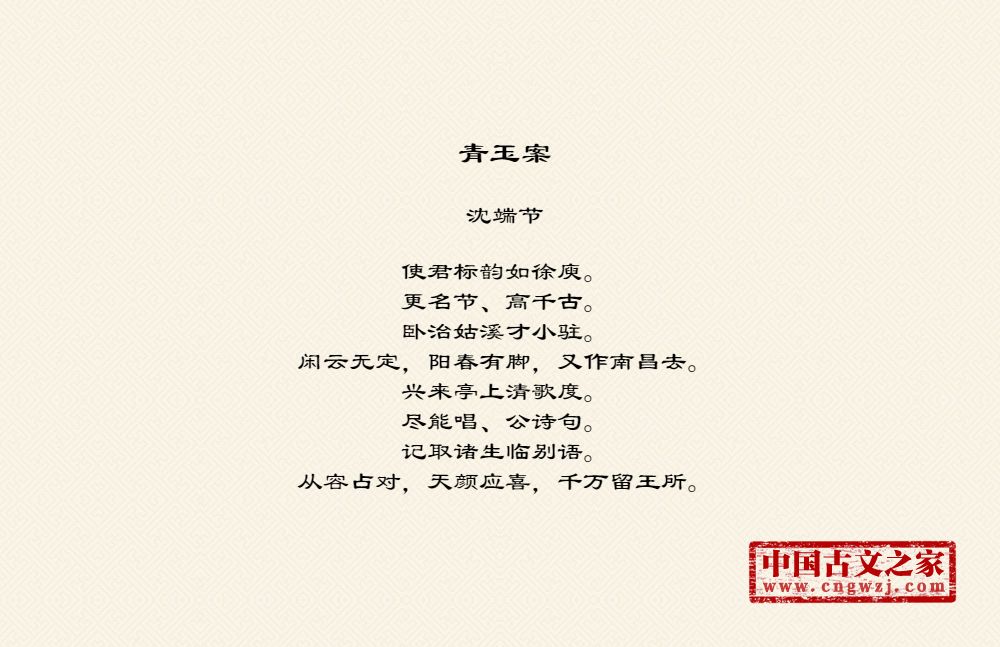 《青玉案》的原文打印版(沈端节)