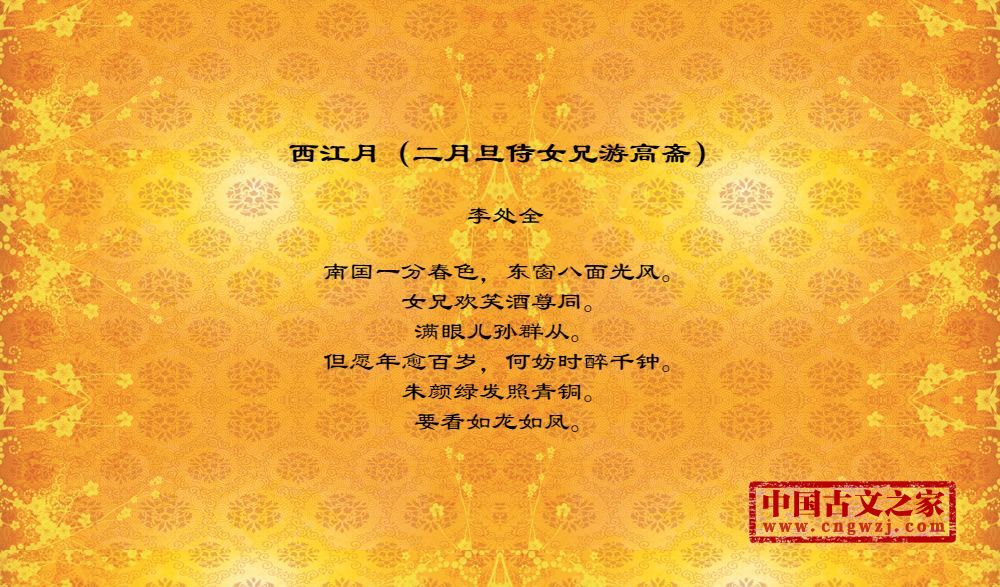 《西江月(二月旦侍女兄游高斋)》的原文打印版(李处全)