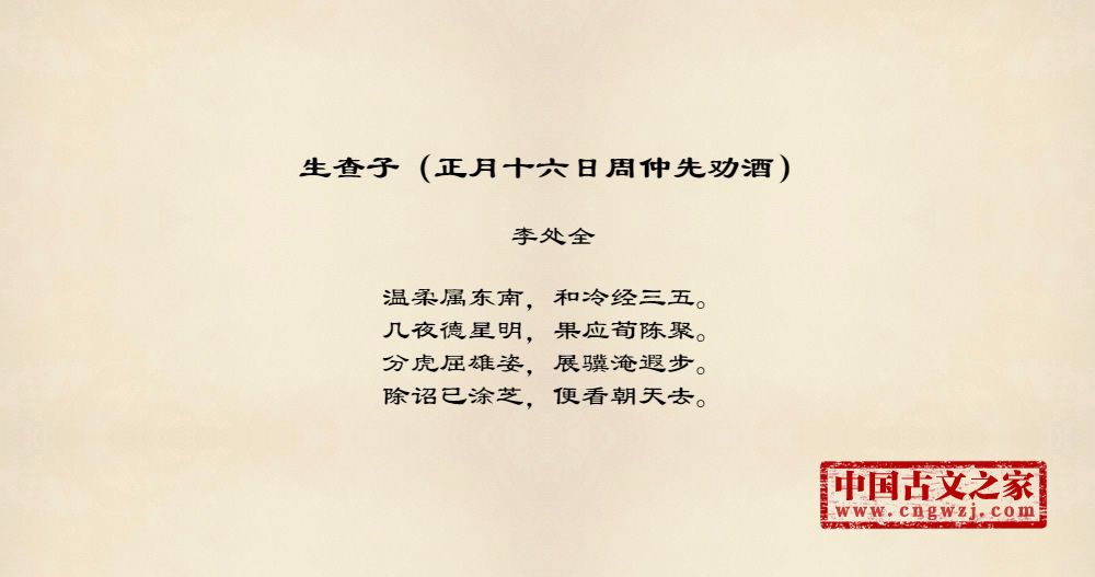 《生查子(正月十六日周仲先劝酒)》的原文打印版(李处全)