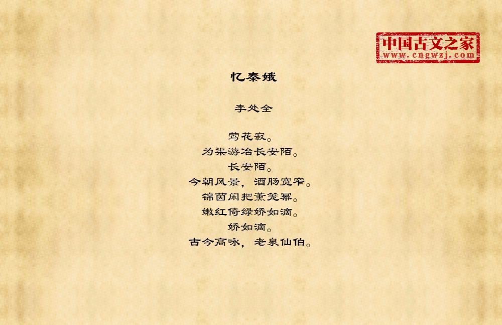 《忆秦娥》的原文打印版(李处全)