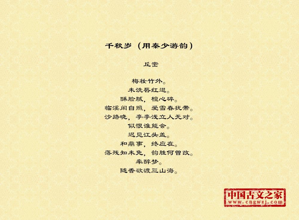 《千秋岁(用秦少游韵)》的原文打印版(丘崈)