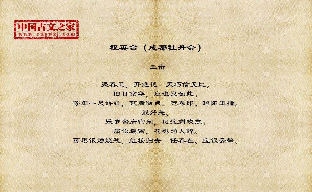 《祝英台(成都牡丹会)》由丘崈创作