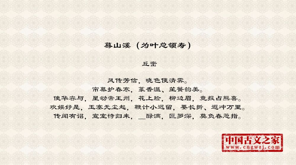 风传芳信,晓色便清霁。帘幕护春寒,篆香温、笙簧韵美。使华容与,星动帝王州,花上脸,柳边眉,竞报占熊喜。欢娱好是,玉塞无尘起,鞭计小迟留,要长折、遐冲万里。传闻有诏,宣室待归来,_醁满,叵罗深,莫负春葱指。