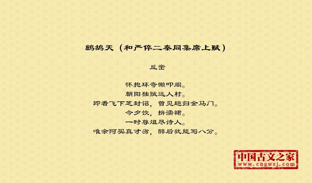 《鹧鸪天(和严倅二秦同集席上赋)》的原文打印版(丘崈)