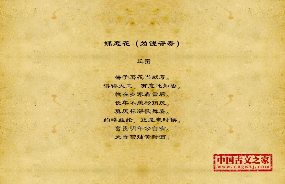 《蝶恋花(为钱守寿)》的原文打印版(丘崈)