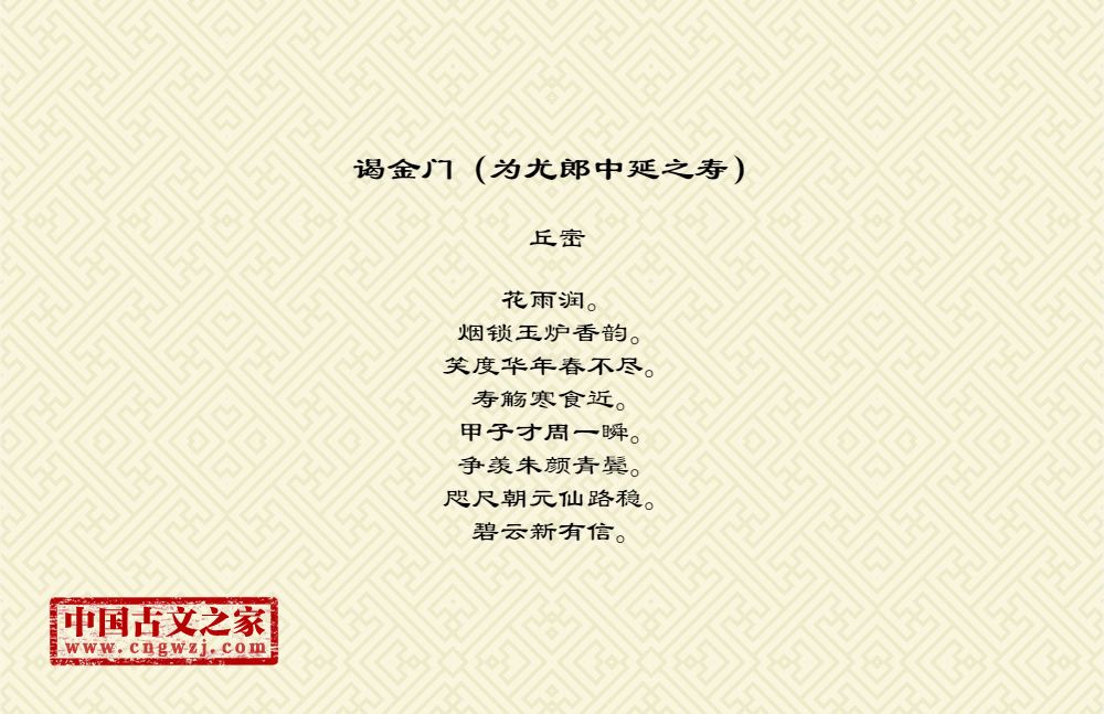 《谒金门(为尤郎中延之寿)》由丘崈创作