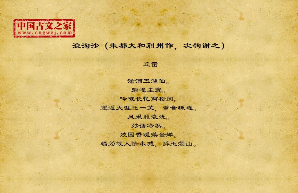 《浪淘沙(朱都大和荆州作,次韵谢之)》的原文打印版(丘崈)