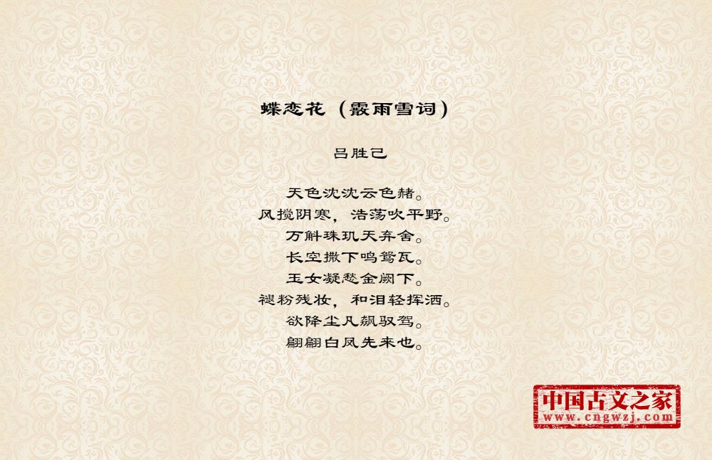 《蝶恋花(霰雨雪词)》的原文打印版(吕胜己)
