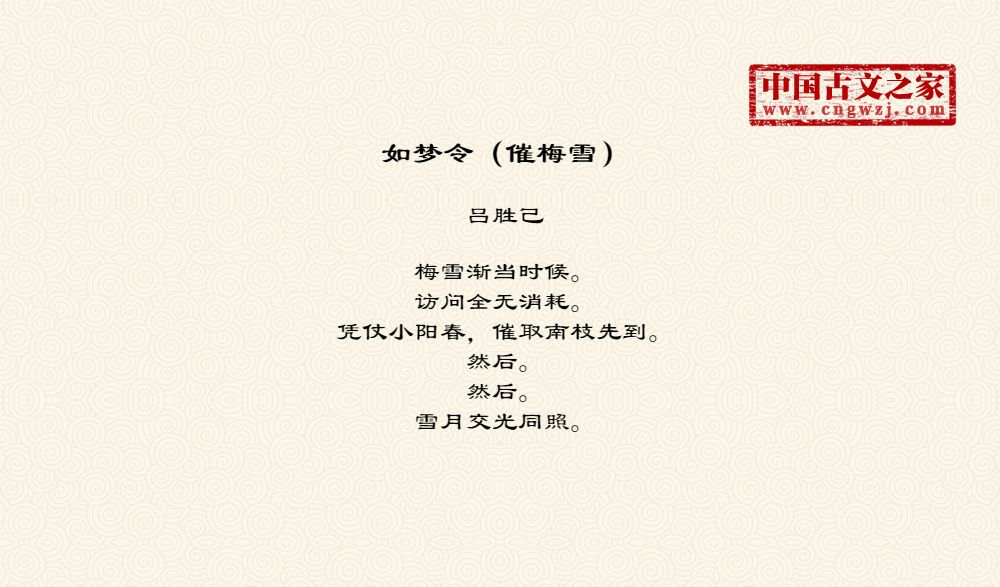 《如梦令(催梅雪)》的原文打印版(吕胜己)