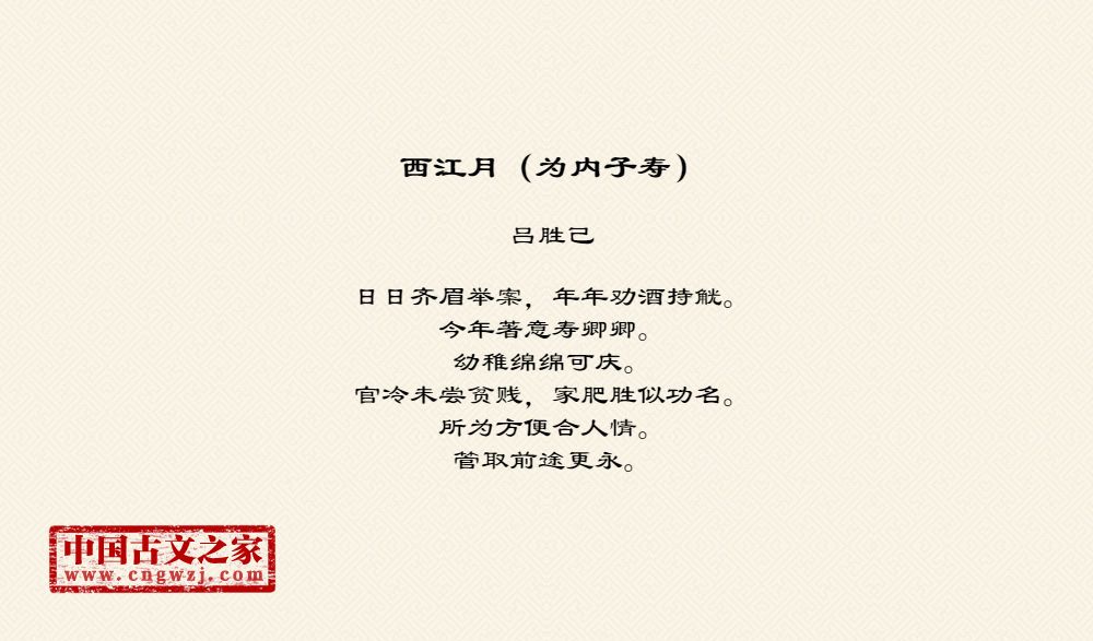 《西江月(为内子寿)》由吕胜己创作