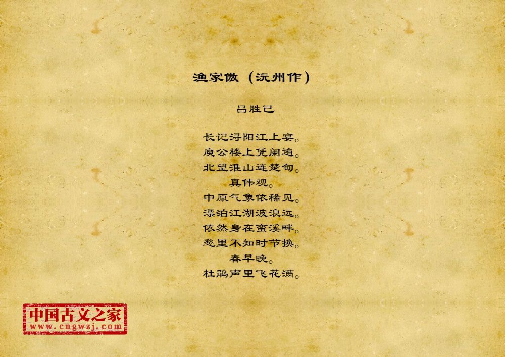 《渔家傲(沅州作)》的原文打印版(吕胜己)