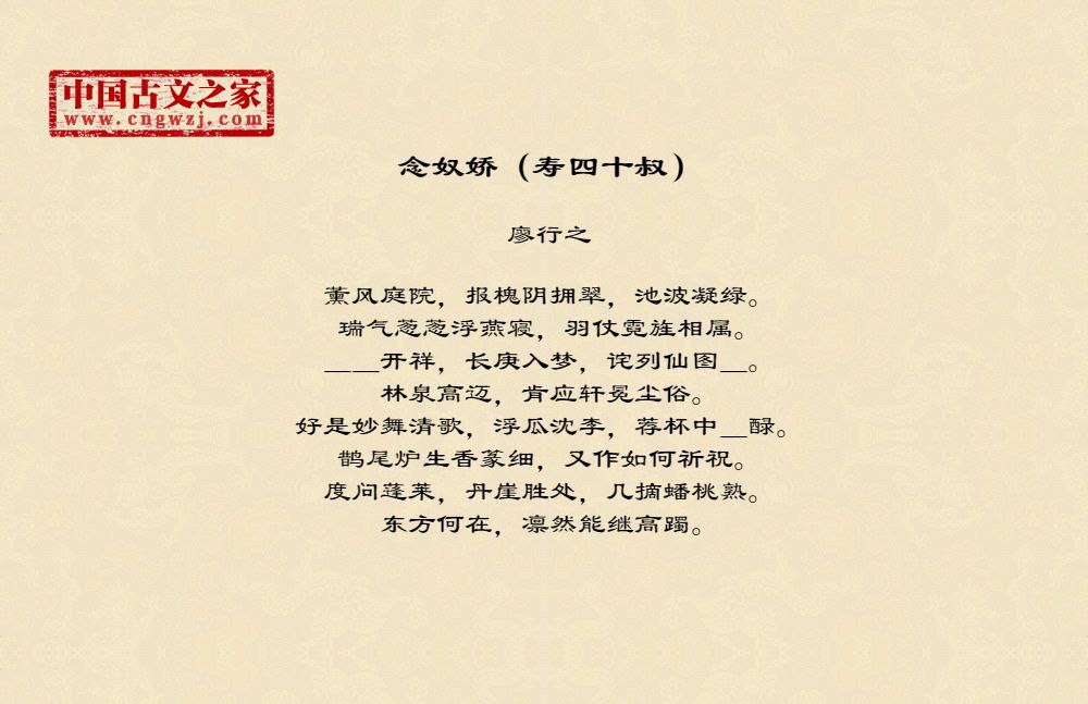 薰风庭院,报槐阴拥翠,池波凝绿。瑞气葱葱浮燕寝,羽仗霓旌相属。__开祥,长庚入梦,诧列仙图_。林泉高迈,肯应轩冕尘俗。好是妙舞清歌,浮瓜沈李,荐杯中_醁。鹊尾炉生香篆细,又作如何祈祝。度问蓬莱,丹崖胜处,几摘蟠桃熟。东方何在,凛然能继高躅。