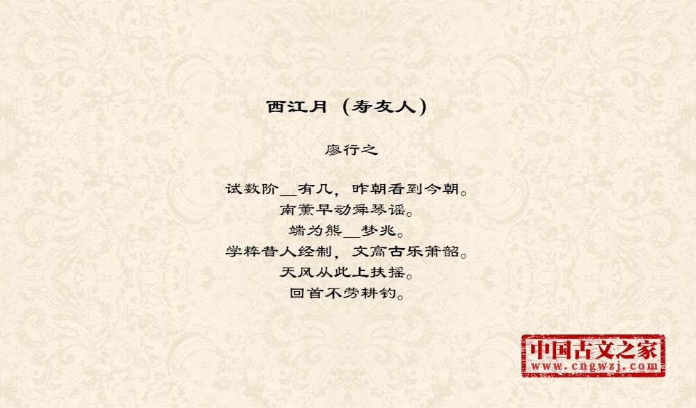 试数阶_有几,昨朝看到今朝。南薰早动舜琴谣。端为熊_梦兆。学粹昔人经制,文高古乐箫韶。天风从此上扶摇。回首不劳耕钓。
