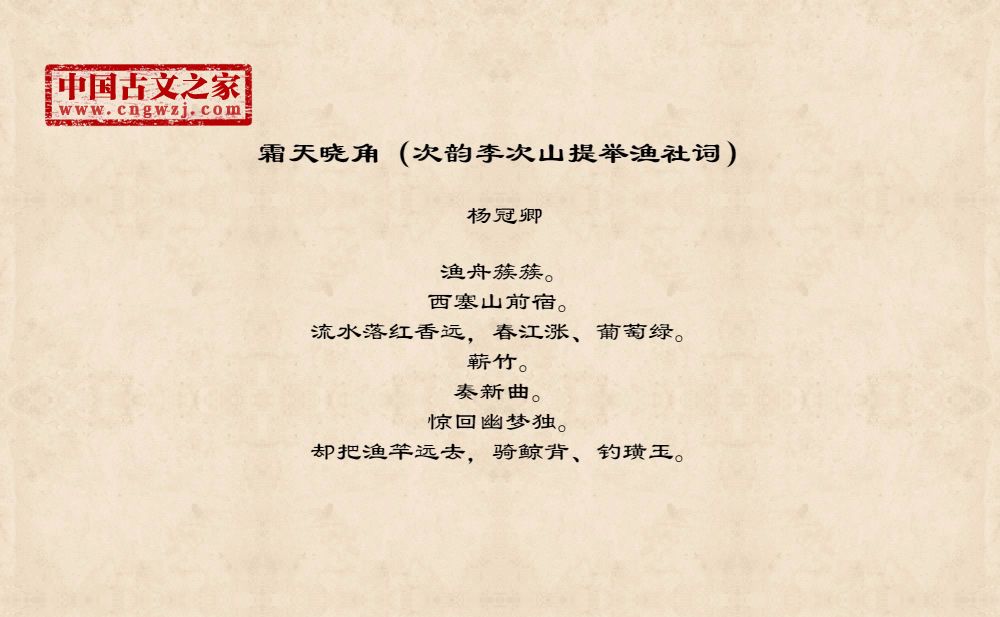 《霜天晓角(次韵李次山提举渔社词)》的原文打印版(杨冠卿)