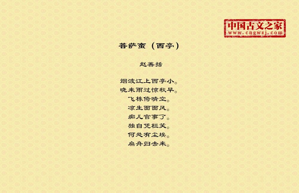 《菩萨蛮(西亭)》的原文打印版(赵善括)