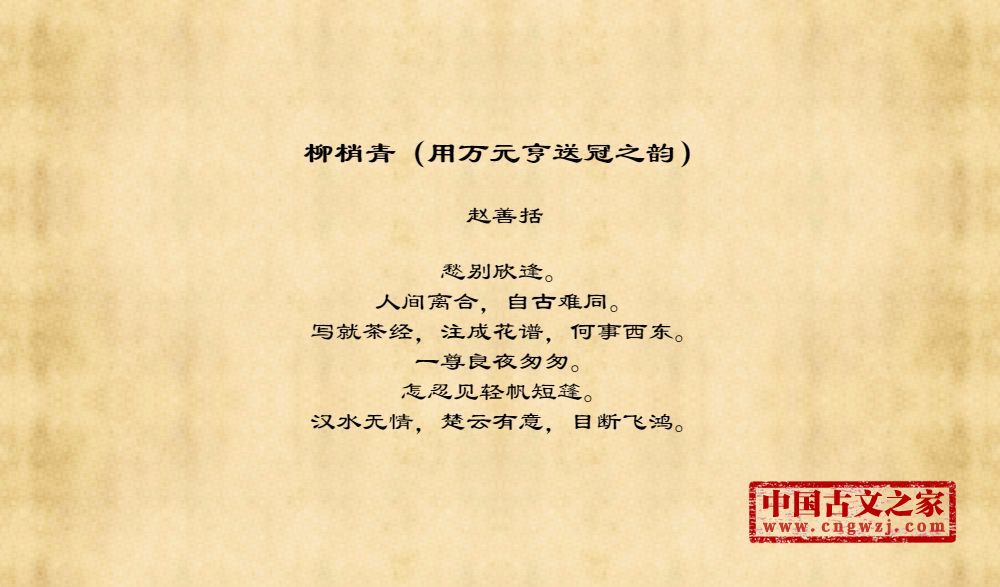 《柳梢青(用万元亨送冠之韵)》的原文打印版(赵善括)