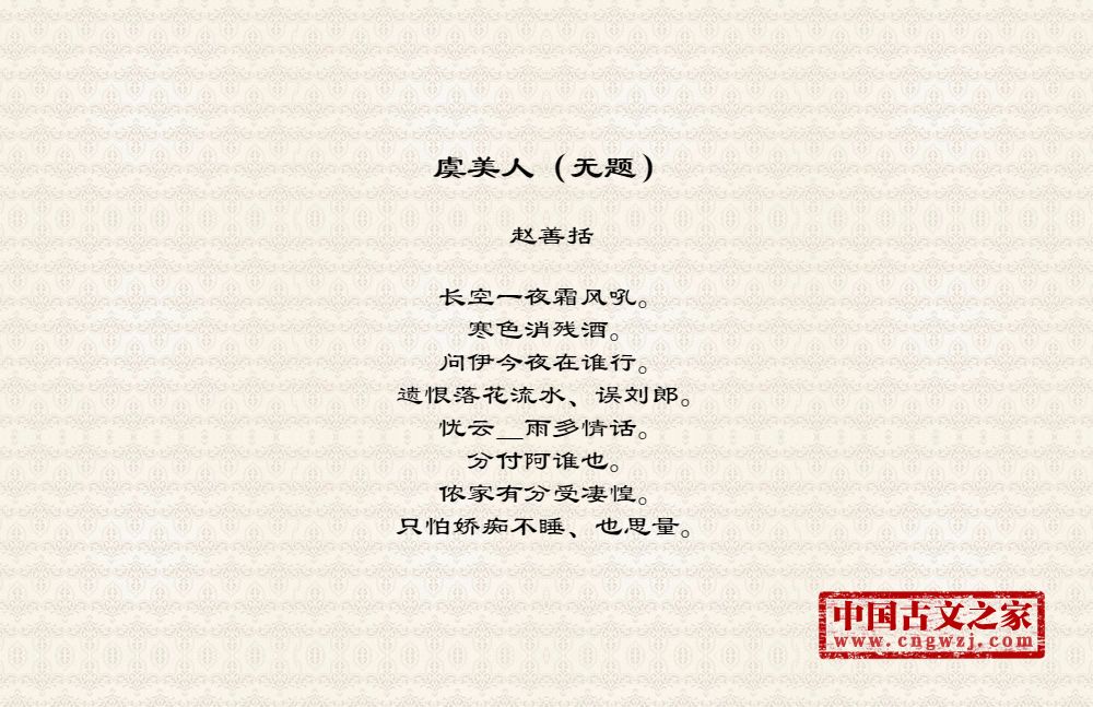 《虞美人(无题)》的原文打印版(赵善括)