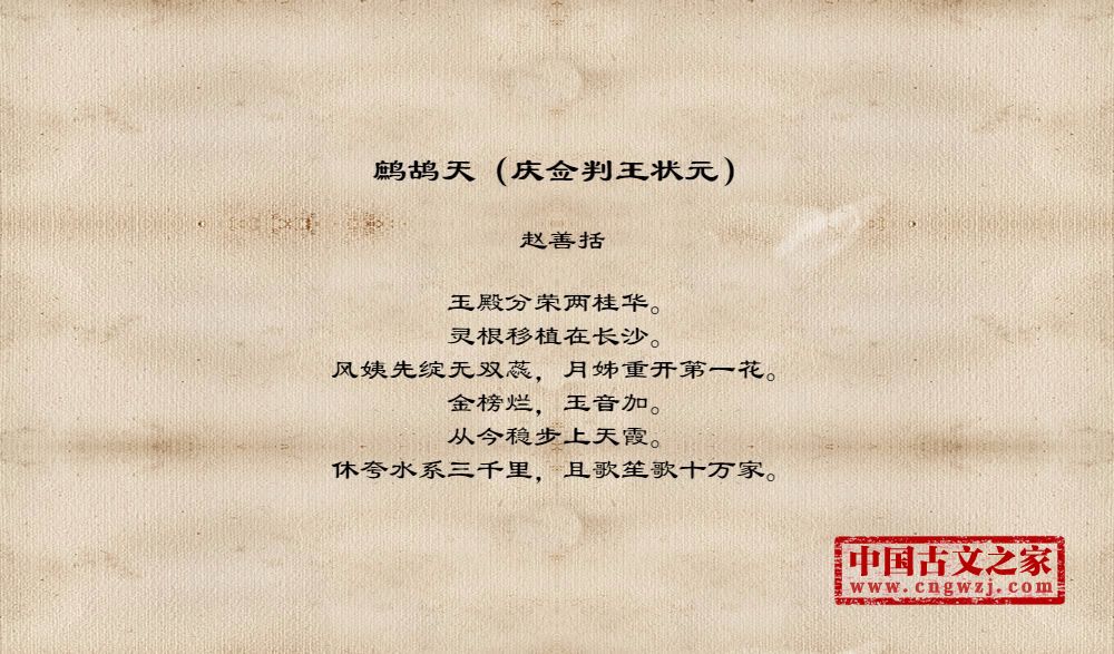 《鹧鸪天(庆佥判王状元)》的原文打印版(赵善括)